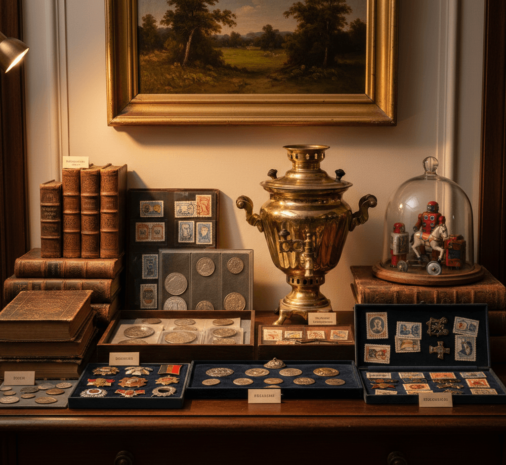 Мы готовы помочь вам продать не только книги. Монеты, марки, значки, самовары, картины, игрушки и другие предметы быта могут быть реализованы с помощью нашей компании.